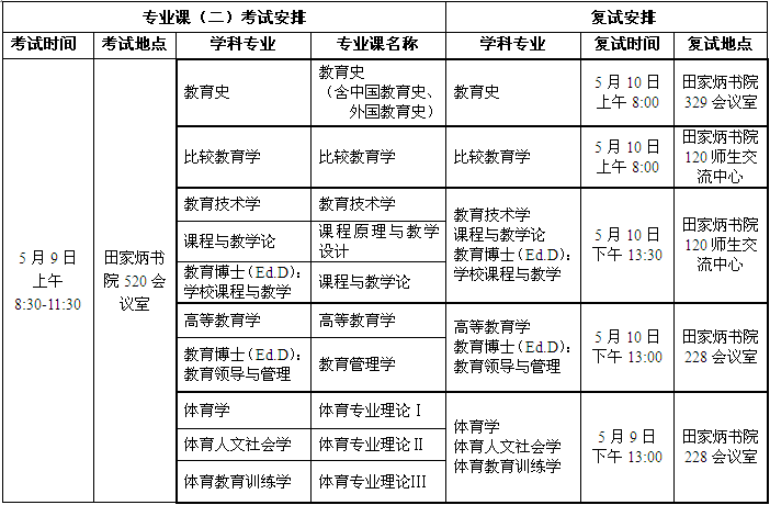 5月5日-5月20日:教育学学科、体育学学科考生分学科专业完成复试工作。