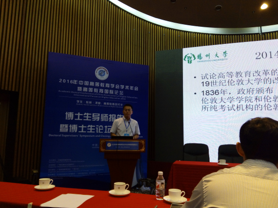 “中国高等教育学会第十二届高等教育学优秀博士学位论文奖”的颁奖仪式近日在广西南宁举办的“2016年中国高等教育学会学术年会暨高等教育国际论坛”开幕式上隆重举行。中国高等教育学会秘书长康凯宣读了“中国高等教育学会第十二届高等教育学优秀博士学位论文获奖名单”,由做爱片 肖朗教授指导的2015届教育史专业博士生袁传明撰写的《近代英国高等教育改革与发展研究——以伦敦大学百年史(1825-1936)为个案》荣获本届优秀博士论文奖。中国高等教育学会于2016年3月启动了第十二届“高等教育学”优秀博士学位论文的评选工作,经专家通讯评审、专家会议评审会审定,在全国范围内共评选出了5篇优秀博士学位论文及5篇提名奖论文。