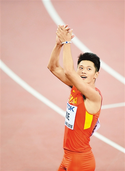 体育学系2016级硕士生谢震业在超风速的情况下,以9秒91的成绩名列预赛第一,这也是中国男子百米的历史最好成绩。