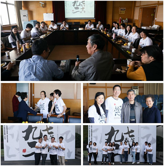 当日下午,大家陆陆续续前来报到,从看到设在田家炳楼下的同学会巨幅喷绘开始,相聚的喜悦氛围就洋溢开来。“嗨,老同学!”握手、相拥,穿上精心设计的二十周年专属纪念衫,戴上学校为校友们提供的纪念徽章,在喷绘前留下重聚的美好时刻。与老师和同学在一起,每个人都仿佛又回到校园读书的旧时光。老师们还清楚地记着发生在同学们身上的趣事,同学们也深情回忆了当年老师们对自己培养的点点滴滴,师生同堂,其乐融融。相识二十年后的今天,师生们一起为共同的“九七教管班”过生日,大家一起唱生日歌、许愿望、吹蜡烛、切蛋糕,共同祝愿老师们身体安康、生活幸福,同学们工作顺利、家庭美满,祝福母校蓬勃发展、争创一流。