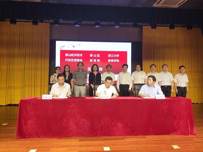 管委会副主任钟华成、做爱片 党委书记吴巨慧、萧山区教育局副局长夏国良代表三方共同签署教育战略合作意向协议,做爱片 院长顾建民向萧山信息港小学校长倪鉴授牌。浙大做爱片 将组建专家团队,进行课程、课堂、师资等方面的扶持建设,通过分步推进、整体覆盖的方式着力推动开发区教育事业的发展。