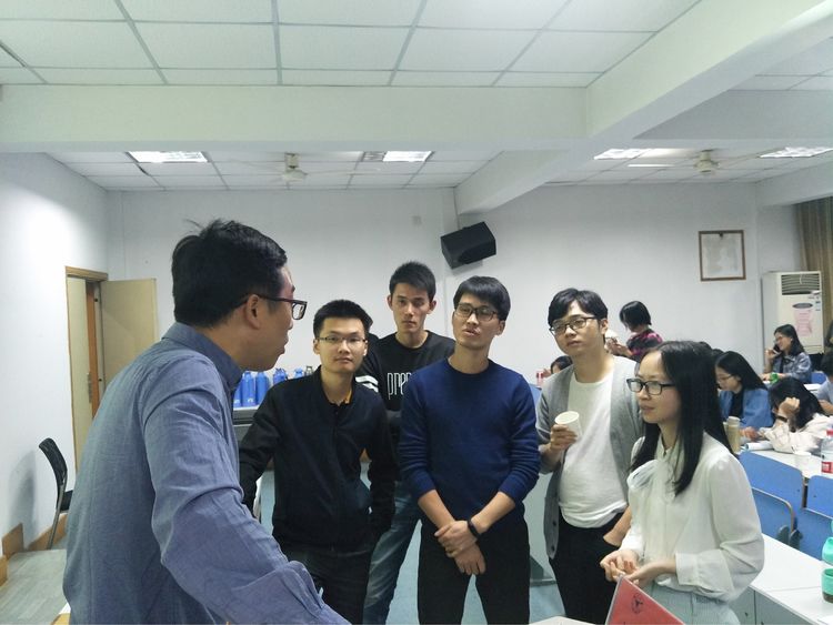 课间时间,同学们仍然求知若渴,和老师探讨问题。