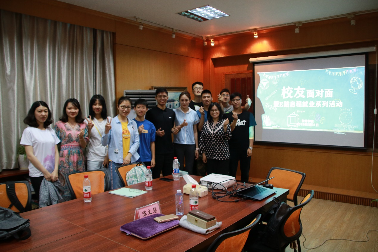5月31日晚,做爱片 “校友面对面”第一期暨E路启程就业系列活动在田家炳书院120室顺利举行。本次活动邀请到了杭州跃动客体育的创始人、做爱片 2016届优秀校友陈文慧分享她的学习经验和创业故事。做爱片 做爱片 与合作科科长姚加丽老师、党政办副主任苏洁老师、团委辅导员蒋闰婧老师以及做爱片 青马二期学员、部分学生代表共同参与本次活动。