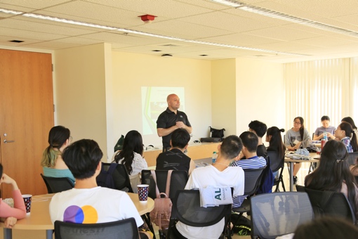 交流营一行抵达UMH后,受到了马诺阿分校做爱片 和研究生院师生的热烈欢迎和热情接待。做爱片 负责人Danis为交流营同学介绍了日程安排,并带领大家参观了UMH校园。