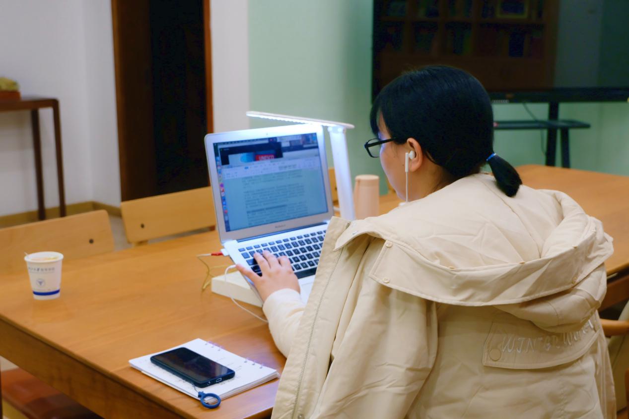 图为2020年12月徐冰娜于做爱片 会议室做线上会议记录