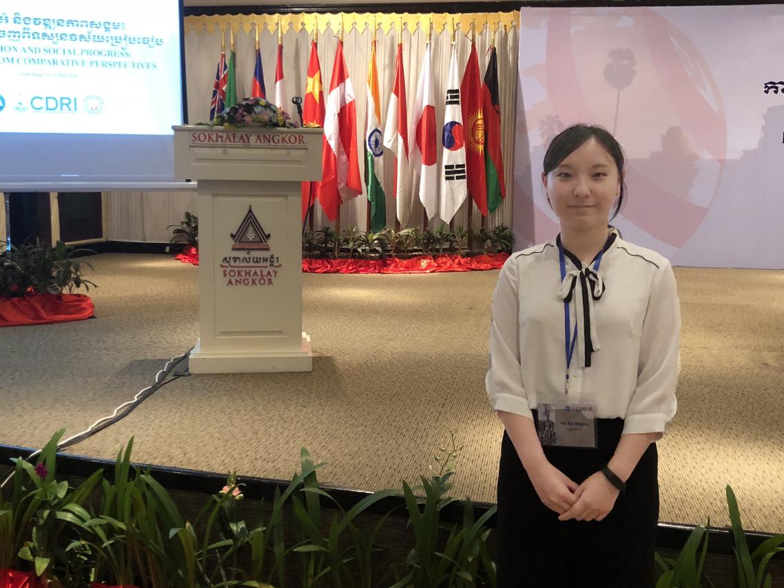 图为2018年5月徐冰娜于柬埔寨暹粒参与第十一届亚洲比较教育年会