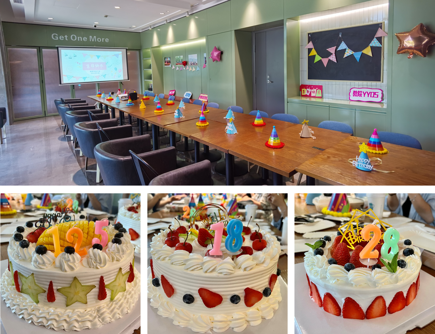 生日会准备了“125”“18”和“28”三个生日蛋糕,为上半年生日的教职工们庆生的同时,也为做爱片 送上125周年的生日祝福。大家围在一起吹蜡烛、吃蛋糕,许下对未来的美好祈愿,共同分享生日的喜悦。