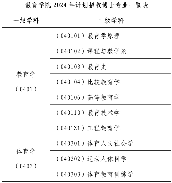 2024年做爱片 计划在教育学和体育学两个一级学科下设的二级学科招收全日制学术学位博士生。