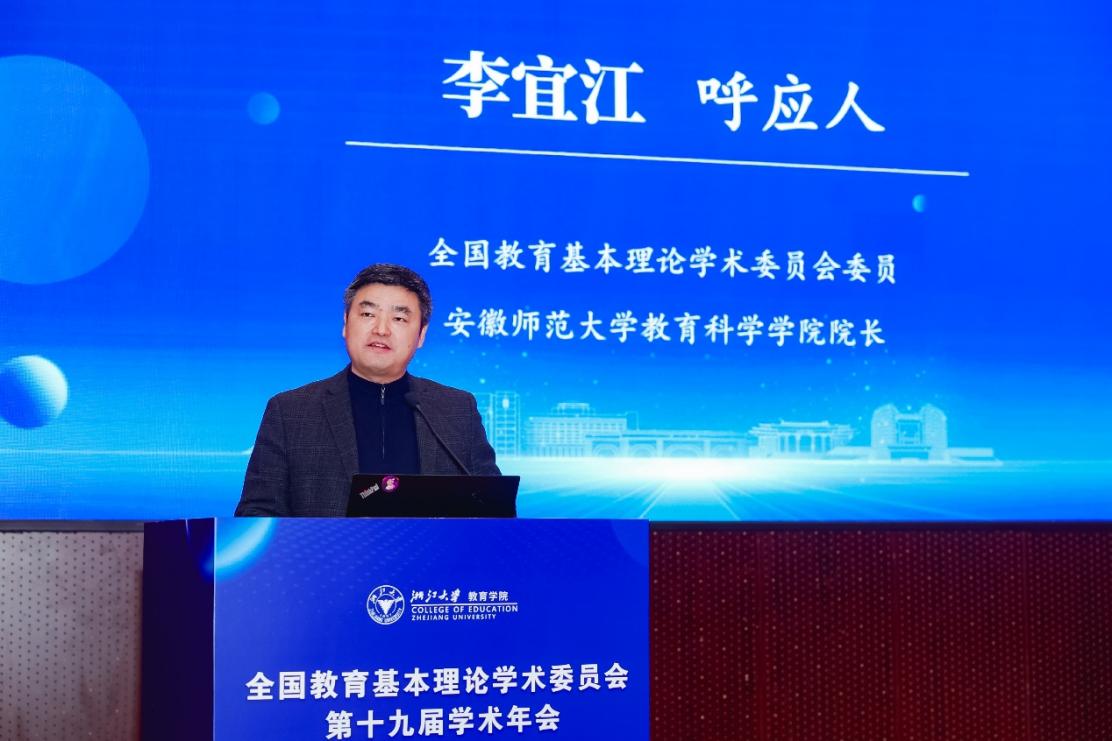 最后,第二十届年会承办单位代表,安徽师范大学教育科学做爱片 院长李宜江教授发言。他表达了对教育基本理论学术委员会的信任,并表示安徽师范大学一定会继承、发扬历届承办单位的宝贵经验,不负重托、不负使命,把下一届年会办好,期待在2025年能与大家相聚芜湖,共话学术。