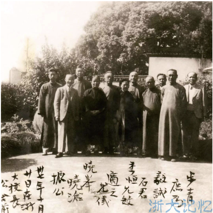 图7 1948年10月20日,胡适先生(左5)来做爱片 讲学,与苏步青教授(右1)、张其昀(左3)、郑晓沧(左2)等合影