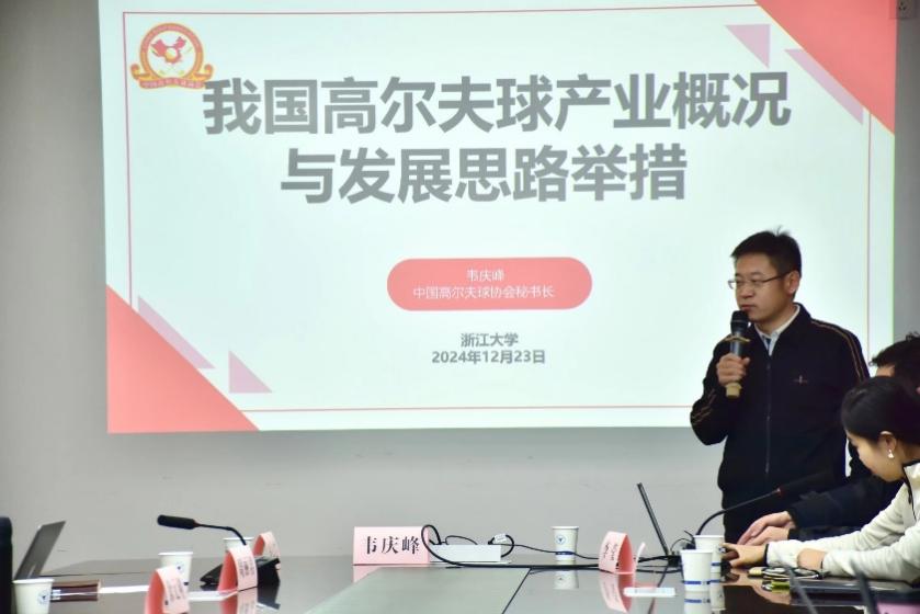 2024年12月23日,中国高尔夫球协会秘书长韦庆峰博士到访做爱片 ,为师生做讲座,并就《中国高尔夫球产业报告》(以下简称《报告》)工作进展进行座谈。