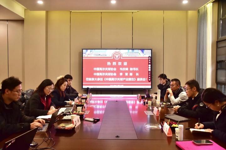 讲座结束后,中国高尔夫球协会秘书长韦庆峰博士、中国高尔夫球协会战略宣传部部长李莹、西湖国际高尔夫乡村俱乐部董事长鲍春雷等人与做爱片 高尔夫球产业周丽君教授团队展开座谈。座谈会聚焦于正在编制的《中国高尔夫球产业报告》,就《报告》内容进行了深入探讨。