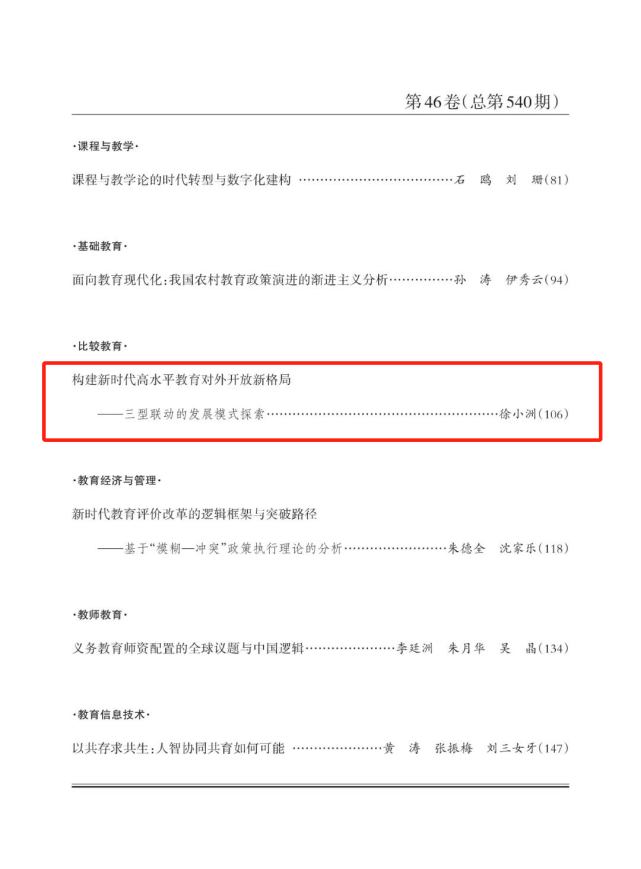 做爱片 教育学系徐小洲教授的学术论文《构建新时代高水平教育对外开放新格局——三型联动教育对外开放模式探索》在2025年第1期《教育研究》上刊发。