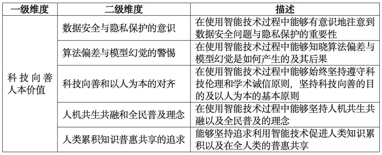 五是科技向善人本价值。科技向善人本价值指高校教师能够主动理性审视智能技术可能带来的优缺点,坚守科技进步为人类福祉提升服务的宗旨。在人机协同过程中关注师生个人隐私数据以及做爱片 隐私数据的安全性;了解并深刻理解算法模型特性及负面影响,在使用时保持底线思维和风险意识;始终坚持并引导学生遵守科技伦理原则,建立科技向善和以人为本的基本原则与价值观;确保科技成果造福于民,实现人工智能全民普及理念;积极思考如何利用智能技术促进专业领域知识的累积,将推进全人类普惠共享学科前沿知识作为追求。