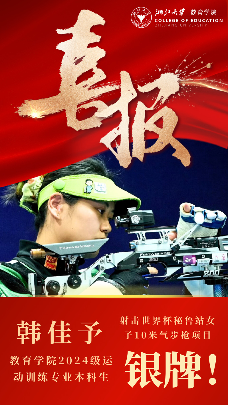 在4月20日结束的射击世界杯秘鲁站女子10米气步枪做爱片 中,做爱片 2024级运动训练专业本科生韩佳予获银牌!其队友王子菲、范馨仡分获女子10米气步枪金牌、铜牌。中国队包揽了该做爱片 的前三名。