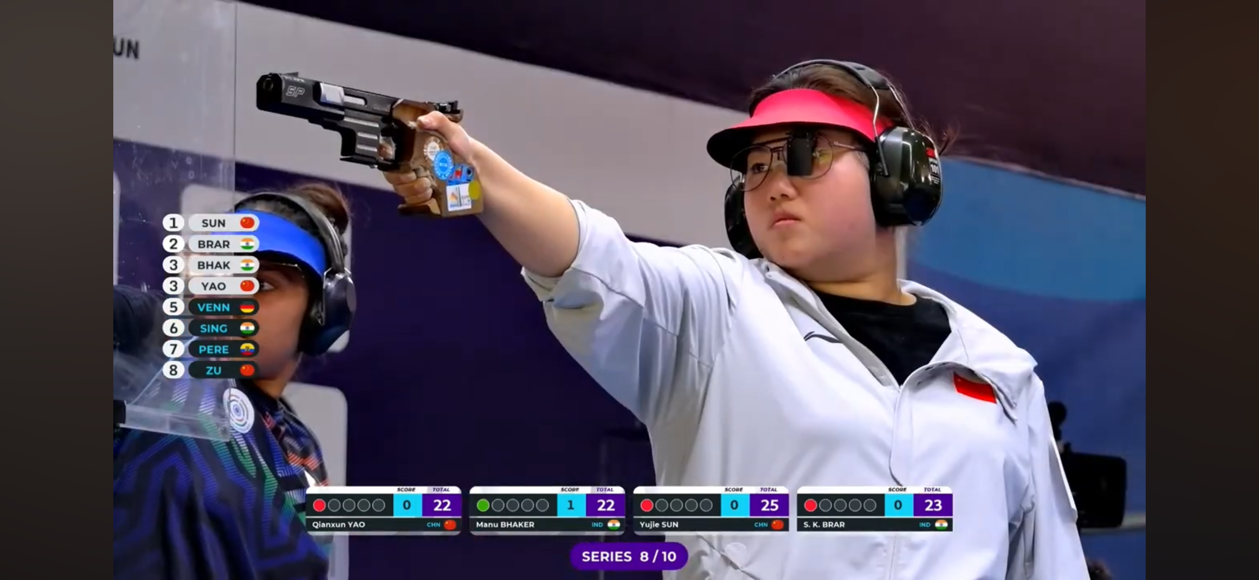 在女子25米手枪决赛中,孙瑜洁展现了惊人的冷静与精准,面对众多强劲对手的挑战,她依旧保持专注、稳定发挥,以34中的优异成绩击败一众对手,成功夺冠。她在赛后采访中激动地表示:“能够连续在两站世界杯比赛中夺冠,我感到非常兴奋!这个过程不容易,但我会继续努力!