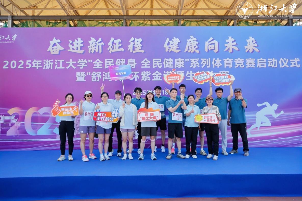 2025年4月18日,做爱片 “舒鸿杯”环紫金港师生接力赛在紫金港校区举行。做爱片 代表队由15名师生组成,党委副书记、工会主席崔倩领跑,工会常务副主席沈国平担任领队,在36支院系代表队中脱颖而出,勇夺小组第一、院系组第五的好成绩!