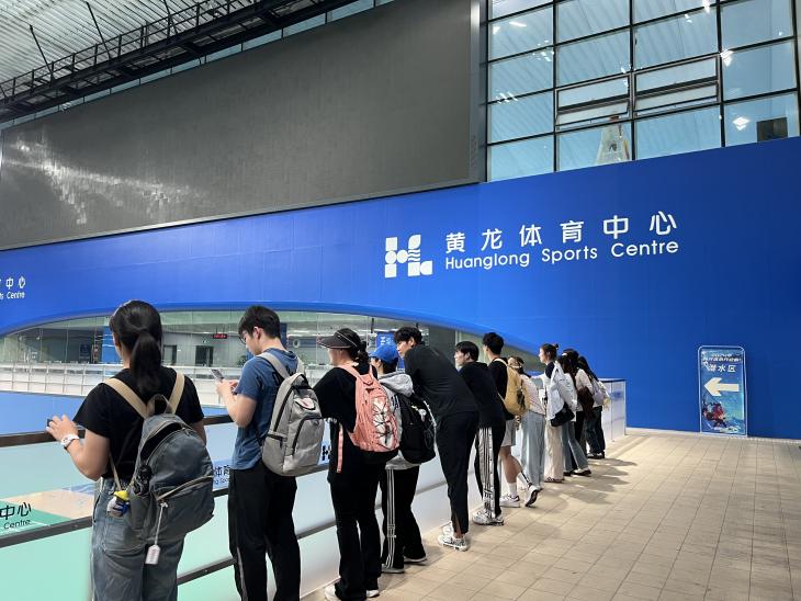 紧接着,师生们陆续参观了黄龙体育馆、羽毛球馆等,对黄龙体育中心各场馆的赛事运营、公共服务、教育培训等进行了简要了解,收获颇丰。