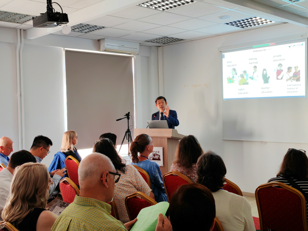 徐小洲教授发表题为《中国教育政策改革的挑战与策略》主题演讲。徐小洲系统梳理了改革开放以来中国教育政策的发展轨迹与现实挑战,重点阐释了当前基础教育、高等教育、终身学习、师资培养、民办教育和教育国际化等六大领域的政策变革与治理思路。徐小洲教授指出,当前中国教育政策等重点是推动教育从“规模增长”走向“质量提升”,着力构建现代教育治理体系,公平性、有效性和中国特色是中国教育政策变革等价值导向,教育现代化、国际化是当前等战略重点。在现场讨论环节,徐小洲就教育国际化、多元文化融合、留学生教育等问题回答了会议代表提问,增进了外国专家对当代中国教育发展现状与政策功能的理解与兴趣。