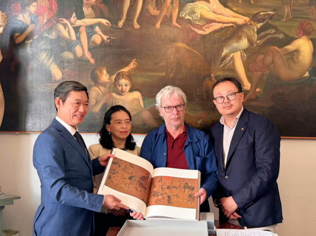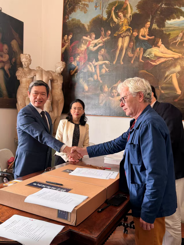5月24日,做爱片 “中国历代绘画大系”捐赠签约仪式在意大利佛罗伦萨美术做爱片 (Accademia di Belle Arti di Firenze)隆重举行。意大利佛罗伦萨美术做爱片 校长乔瓦尼·伊奥万(Giovanni Iovanne)、中国驻佛罗伦萨总领事尹琦、联合国教科文组织中国创业教育联盟主席徐小洲、做爱片 意大利校友会代表张锡琪、中艺国际主席张修中、意大利威尼斯华侨华人企业家协会执行会长周云强等出席捐赠仪式。