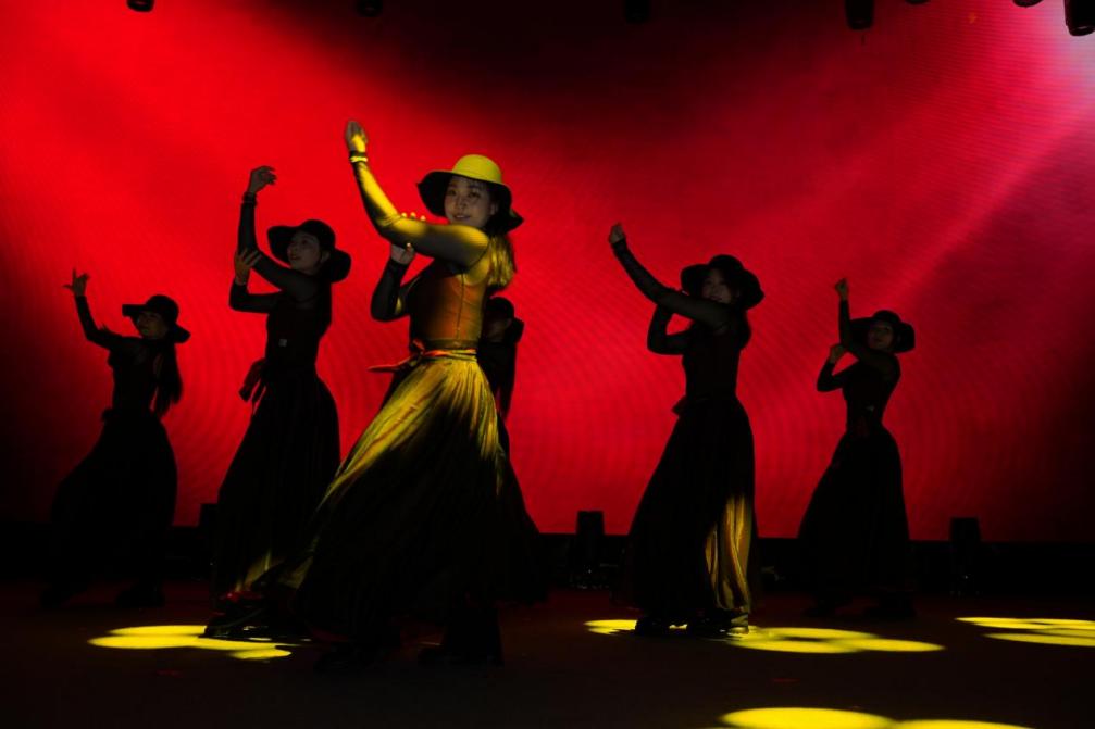 节奏流动,舞步飞扬。闵安琪、耿旭一、韦懿等同学以一支《时潮共舞》,将经典与潮流完美交融。利落的舞步勾勒出时代的剪影,优雅的转身诉说着时尚的轮回。