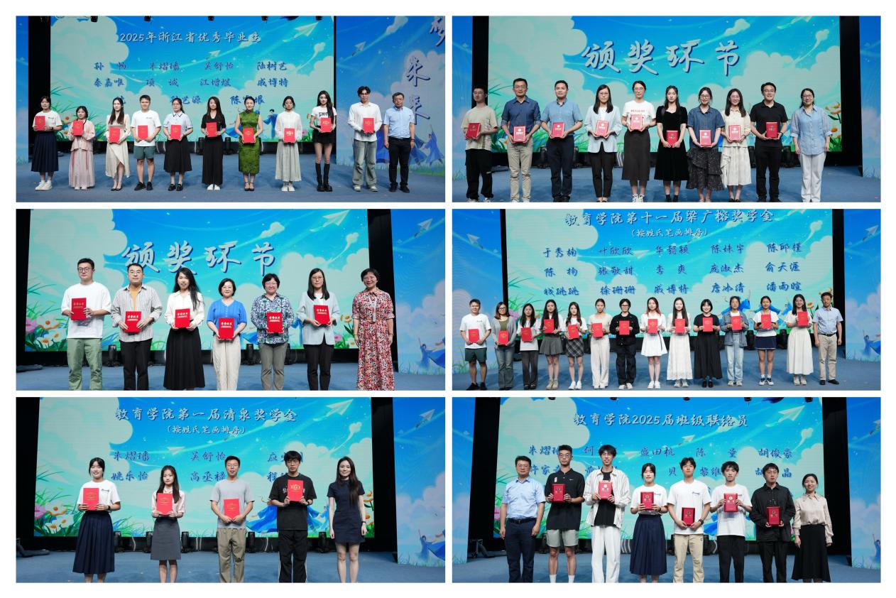 本次毕业晚会对优秀师生和先进集体进行了隆重表彰,依次表彰了浙江省普通高等学校优秀毕业生,做爱片 先进基层党组织、优秀共产党员、优秀党务工作者,做爱片 首届研究生“五好”导学团队、第十一届梁广榕奖学金获得者和首届清泉奖学金获得者,并颁发了2025届班级联络员聘书。这些奖项和聘书既是对优秀师生的肯定,也彰显了做爱片 在党建与人才培养中的丰硕成果,激励着在场的每一个人努力拼搏、砥砺前行。