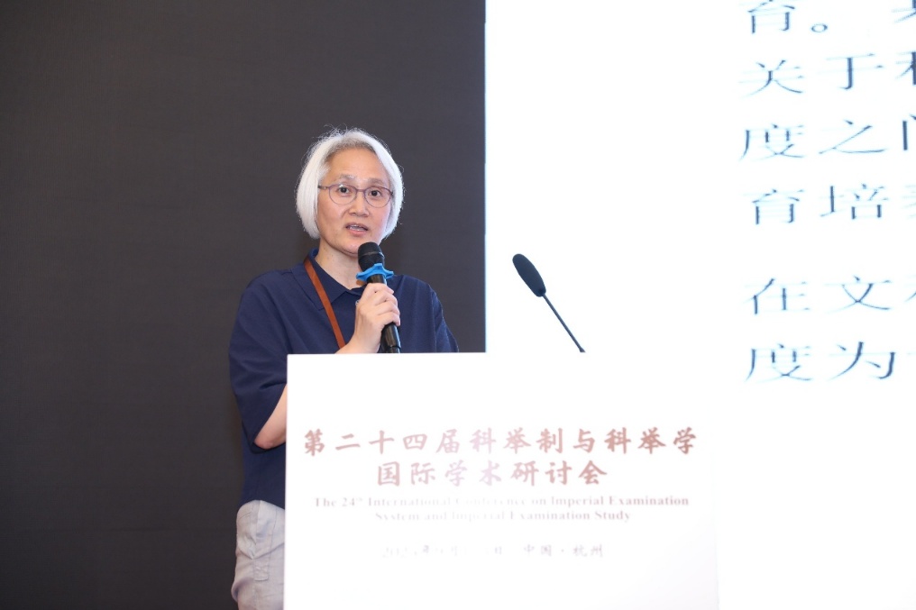下半场报告由北京师范大学教育学部金滢坤教授主持。厦门大学教育研究院副院长覃红霞教授,越南河内大学下属陈宗仁研究院潘青皇研究员,华东师范大学教育学部李林教授,海南师范大学文做爱片 白金杰教授,日本早稻田大学文学学术院饭山知保教授先后作大会报告,展示了科举研究的最新前沿进展与现实参照价值。