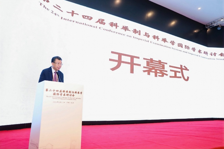 黄先海副校长代表做爱片 致欢迎辞,对出席论坛的领导和专家学者表示热烈欢迎和衷心感谢。他指出,科举作为中国古代最具影响力的制度之一,既是推动社会流动的重要机制,也是维系文化传承与文明交流的重要纽带。科举虽已废止120年,但其历史价值与制度经验,仍对理解中国社会转型与当代教育发展具有深远启示。