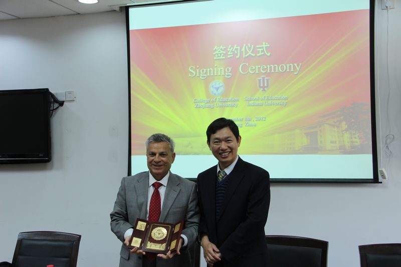 Zhejiang University and Indiana University are close friends and between both schools there has been intercollegiate exchange and frequent exchanges for visitations. Dean Xu presented this signing of the cooperation agreement as very important for our school and university. The College of Education, Zhejiang University and the School of Education, Indiana University have maintained a cooperative relationship since the early 1980s and have engaged in mutual visitations and cooperation which have continually strengthened the relationship. More than 10 faculty members and students of our college have visited or been visiting scholars or entered into the PhD degree program. At the same time, faculty members from the school of Education, Indiana University have also visited as short term foreign experts and have made great contributions to the fostering of students through lectures, conducting student academic papers, and helping to set up our college curriculum system.