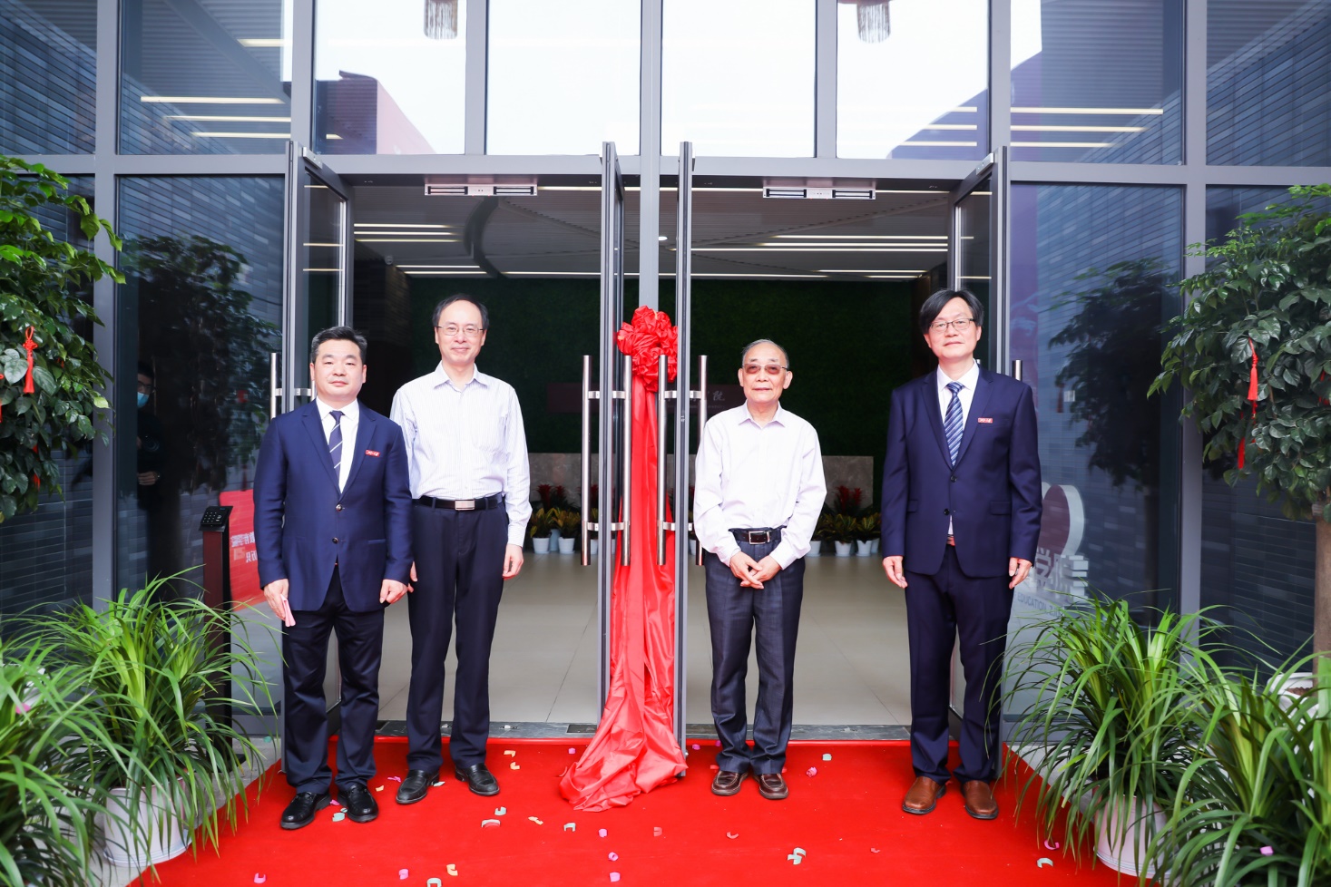 Senior Professor TIAN Zhengping and LIU Haifeng, Dean Gu Jianmin and Secretary WU Juhui, joined hands to open the door of the new building, marking that the new building was officially put into use.