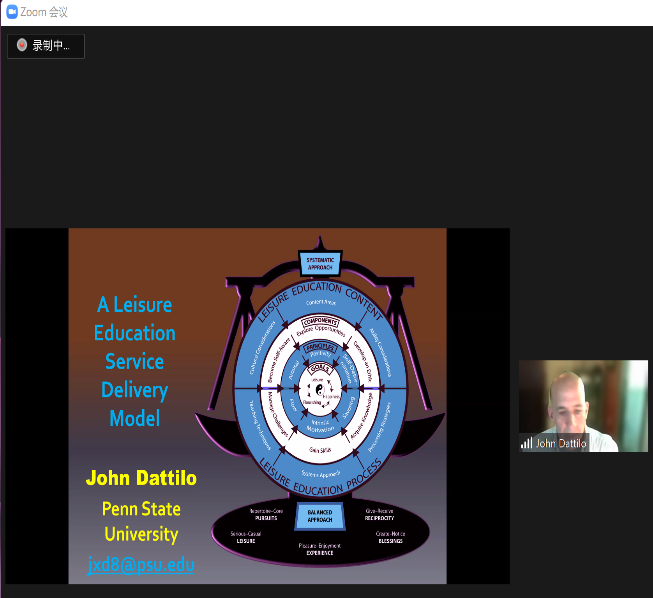 June 4th evening,Professor John Dattilo of the Penn State University focused on “Leisure Education”.With Pro. John Dattilo's minute explanation,  more about leisure sport was revealed. As it’s claimed, leisure education is a multi-faceted and dynamic process that promotes the development of people's motor skills, spiritual growth and moral norms.