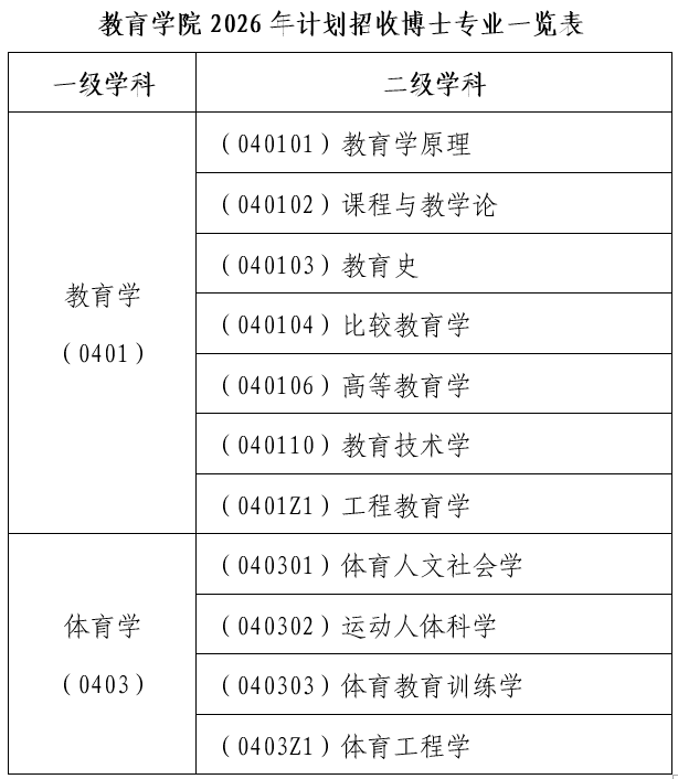 2026年做爱片 计划在教育学和体育学两个一级学科下设的二级学科招收全日制学术学位博士生。